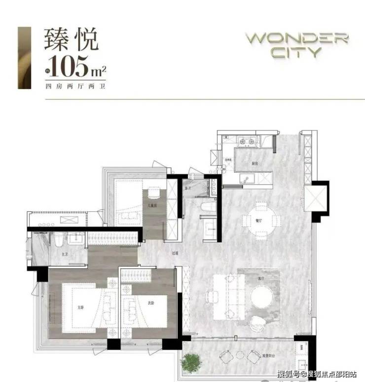 二期的10#,位置在小区中间,更加安静,定价比起去年卖的一期贵,当然,使用率方面,跟一期比起来也做了进一步提升,算上花池、阳台跟飘窗等赠送面积,使用率接近130%,主力的户型只有两个,分别是建面约105m²的四房和建面约128m²的四房。