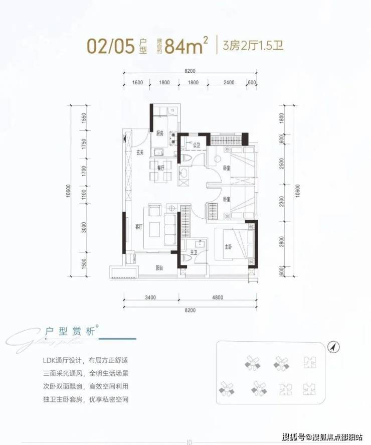 建面约84㎡是传统竖厅动静分区格局,客厅进深7.55米(不含阳台),开间3.4米,主卧8.4㎡(不含主卫和飘窗),空间确实会偏紧凑一点,但没什么硬伤,实用性还是非常不错的。