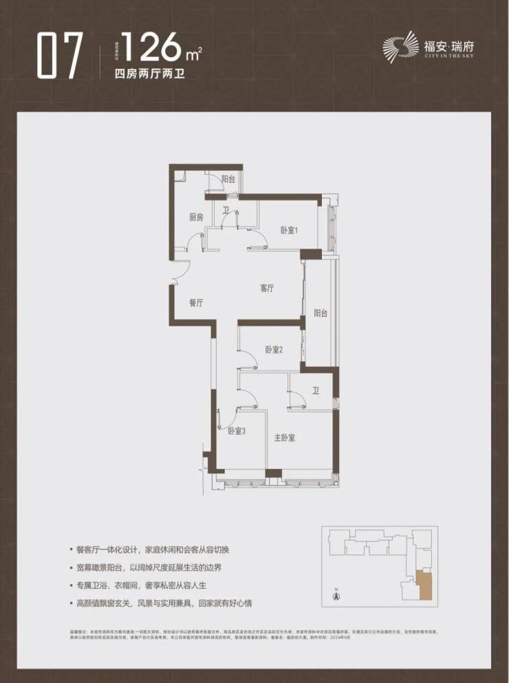 户型图如下,主推建面约97-98-112-126-143㎡的3-4房产品,户型均设计有双阳台、双套房。