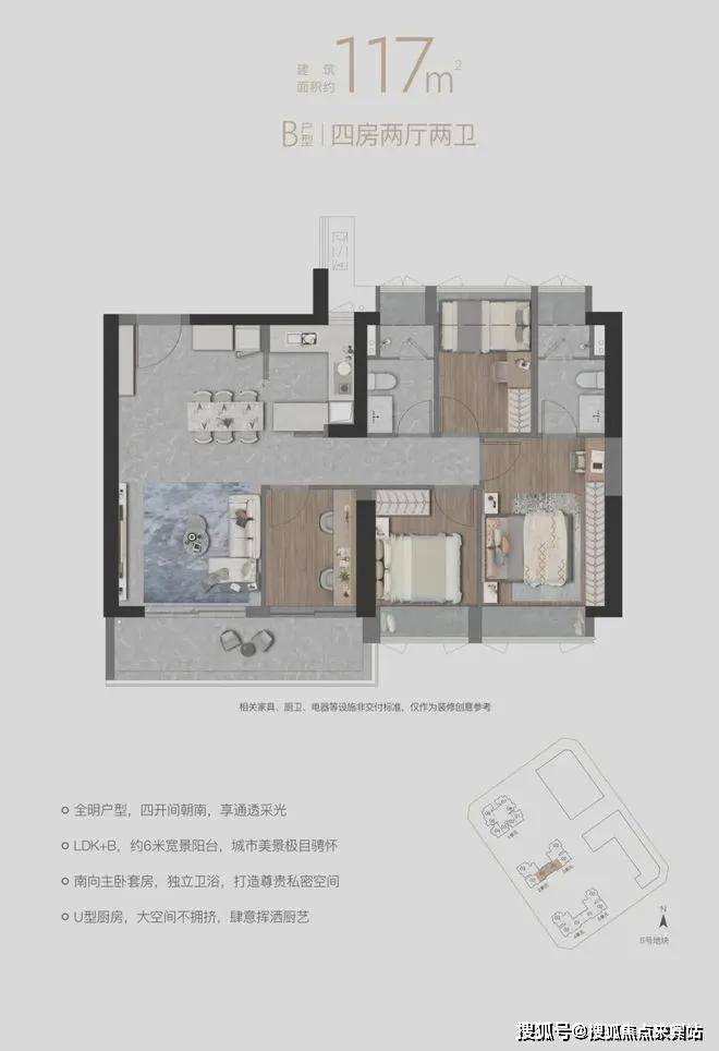 “南向全明四房LDK+B”设计,宽景阳台,拥揽四季