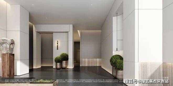 酒店化主入口、次入口、车库入口、首层大堂,酒店化迎宾与归家动线,以无风雨通廊为核,赋予归家更多体验感,带来高效、安心的归家出行之旅。