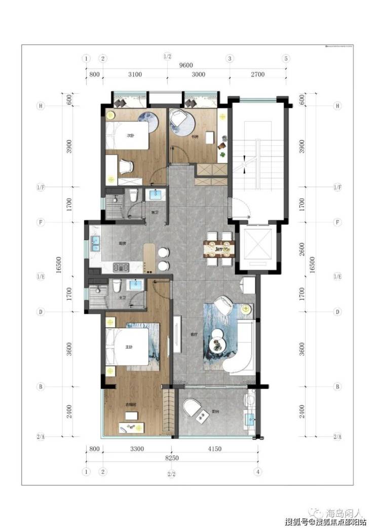 标准层(2层3层)建面:122㎡ 三房两厅两卫
