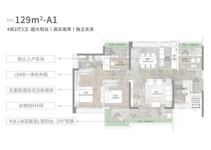 129平更能体现新旧户型的迭代升级,也更有记忆点。比如传统户型只能做到约4.2米的客厅开间,它却做了5米的大方厅,餐客厅南北对流;也从标准三房迈进了标准四房。 8米L型阳台,一边用来晾衣服,一边用来观景,遥望夕阳下的青山。1栋129平的户型,有东南向和西南向两个选择。 140平、160平都预留了+1的灵活空间,可根据家庭需求,改造成5房。而且都有独立的L型入户玄关,南北双阳台,主卧主卫270°观景飘窗。