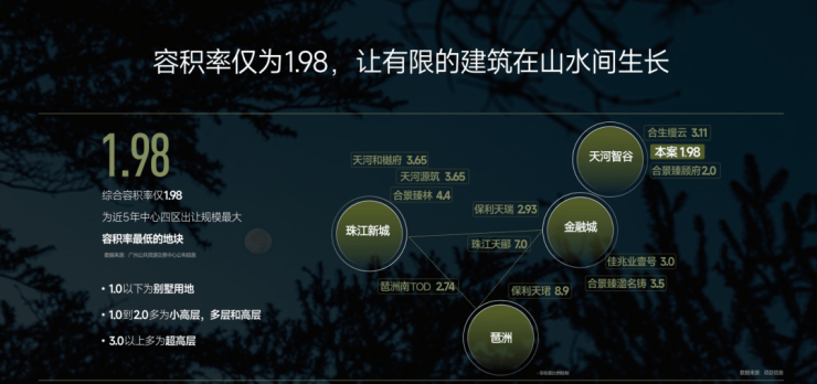 【樾·发展】天河难得再有的51万方世界大观,5住+5商连片开发仅规划居住0.8万人,5住+5商连片开发,实现产居比1:1的奢侈配比;打造集特色商业、多元住房、艺术体验、教育文化等功能于一体的复合街区,补齐区域内商业短板远期将联动大观村旧改等周边地块、联动航天奇观产业板块,促进创新产业集聚,发展工程建设总投资约3.2亿。【樾·低密】天河难再有的低密住区,板块综合容积率仅1.04,让有限的建筑在山水间生长,项目容积率仅1.98,是近5年中心四区出让规模最大,容积率最低的地块,宛如在森林里种房子【樾·自然】天河不再有的自然藏品,私享山、林、湖、氧生态资源,7X24小时在城度假主义在此打开,让每一次归家都是栖心