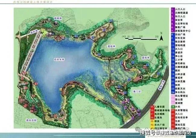 项目南边是民悦公园和民治水库,目前能看到民治公园建设工程方案设计图流出。