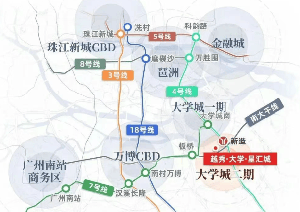 地铁交通:项目到4号线新造地铁口大概900米左右,这个距离,也不算太近,但是步行的话还是可以到的。4号线0换乘实现4站琶洲,5站金融城,轻松换乘5/7/8等多条重要地铁线路,10站以内通达所有CBD。