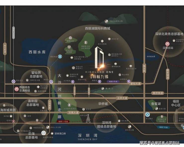 除深圳北站外,项目还毗邻西丽高铁站(综合枢纽部分已开工建设中)。西丽高铁站规划规模将超过深圳北站,布局13台25线。