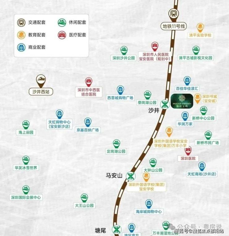 🚇『立体交通 出入繁华快人一步』陆、空、轨多维立体交通网络,勾连起驱动城市前行的澎湃力量。• 地铁直达:约300米(直线距离)11号线沙井站,6站直达宝安机场,8站宝中,9站前海• 主道纵横:广深高速、外环高速,畅达福田CBD、宝安机场• 城际联动:“穗莞深城际”沙井西站,轻松畅达粤港澳大湾区