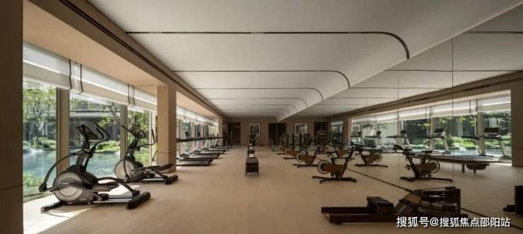 围绕中心区,约300㎡的健身房与下沉庭院形成视觉互动,配置专业组合器械,涵盖健身、瑜伽、普拉提等,无惧风雨四季轻松运动,随时保持身体活力。