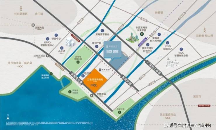 项目周边,就有三条地铁线环绕。东莞2号线(在建中,预计27年通车)位于南侧滨海湾大道上,毗邻项目的就有交椅湾站和交椅湾西站(预计2027年完工);东莞3号线(前期筹备阶段)位于项目东侧中海路。东莞9号线(规划中)位于项目北侧东湾大道。