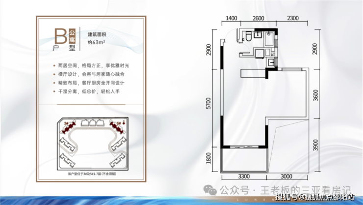 A户型:46㎡1房1厅1卫B户型:63㎡2房2厅1卫B1户型:63㎡1房2厅1卫