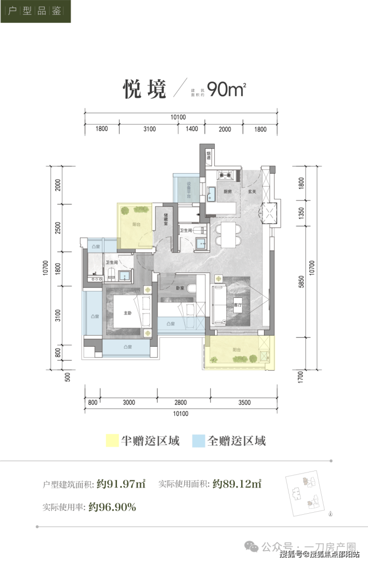 而本次推售的产品属于新规设计,首先看看90㎡的3房两卫,使用率含赠送约96.9%,依旧是配备LDK烹饪+客厅通透的社交空间,3.5m大开间向阳设计,以及两面采光的环幕主卧,也是目前上车的最低门槛。