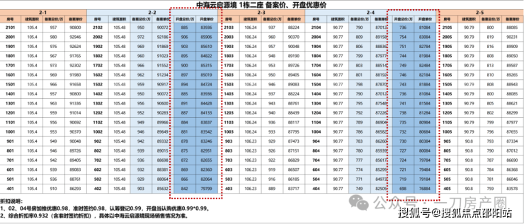 具体各楼层/户型折后价格表