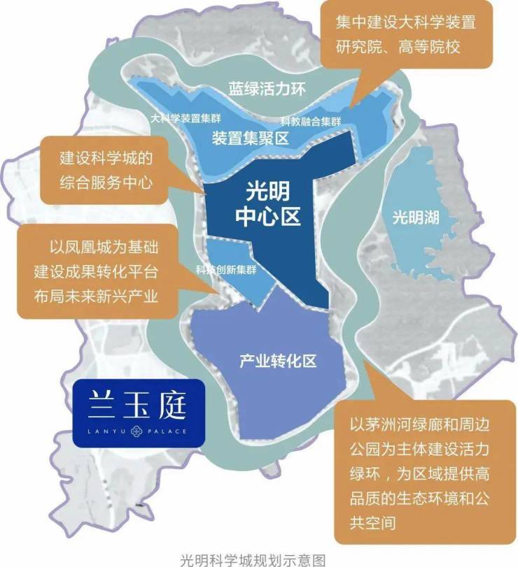 光明科学城占据广深港科技创新走廊重要节点,将建设成世界一流科学城和深圳北部中心,定位为大湾区综合性国家科学中心先行启动区,打造“中国新硅谷”。项目傲踞光明科学城南部,未来一片光明。