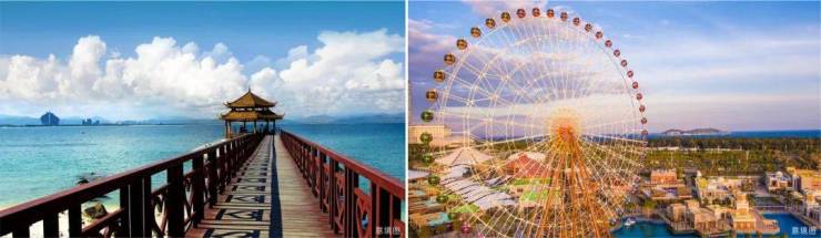 蜈支洲岛5A风景区、后海、妈祖庙、椰子洲岛、水稻国家公园、南田温泉、亚特兰蒂斯水世界、海昌梦幻海洋不夜城、HELLO KITTY主题乐园(在建中)等。