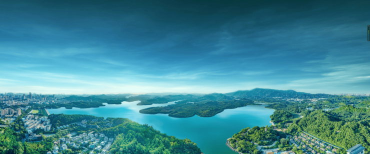 西丽湖与麒麟山、羊台山、塘朗山三山环绕, 周边有大沙河公园、羊台山公园、塘朗山郊野公园、深圳野生动物园四座公园。形成了“三山一湖四公园,原生态低密人居”的环境布局。