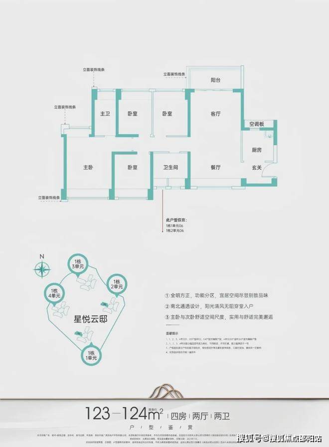 主力产品面积:建面约95-124㎡3-4房