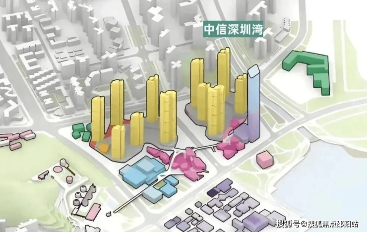 东地块即中信信悦湾,占地2.82万㎡,计容建筑面积15.6万㎡,共5栋43-51层的超高层住宅,车位938个,车位比达1:2。
