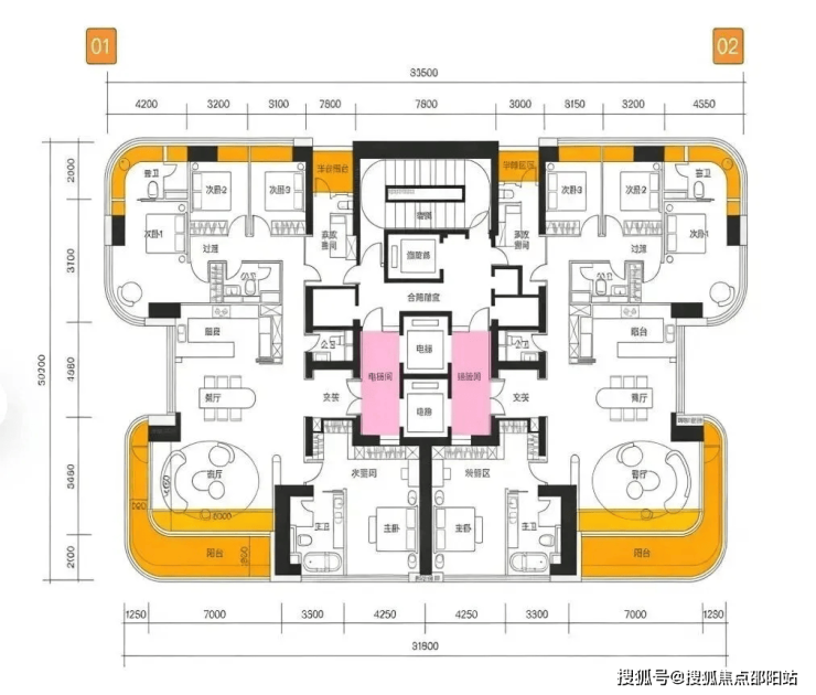 1D/E栋 302-307㎡:经典主力,3梯2户,南北通透板楼设计,4房4卫+保姆间,功能与尺度平衡,适配精英家庭。