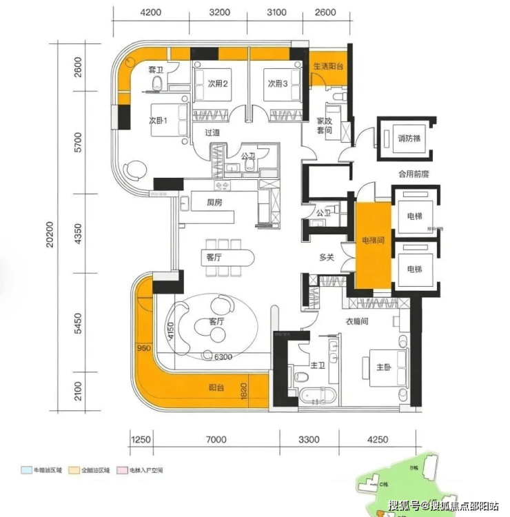 · 最大约85米开阔楼距,通透式塔楼布局,以退让成就拥有