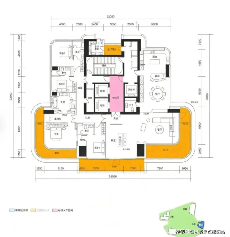 3梯1户,5+1房3厅5卫,私密性登峰造极,为城市领袖定制的空中行宫。