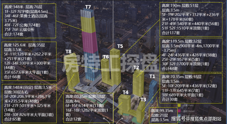 深圳湾一号总建筑面积47.5万㎡,由8座塔楼及1座商业建筑组成,分为南北两区,北区分为:T1写字楼、T2、T3、T4公寓;南区分为:T5、T6、T8公寓,T7为环球商务中心。