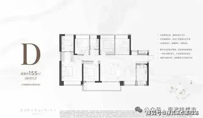 【产品面积段】116-117m'四房,155m'五房梯户比】西区2梯4户、3梯6户 东区35户
