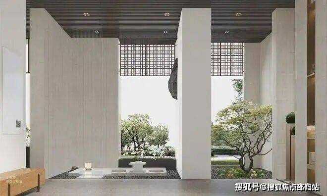 以东方雅韵为出发点,从尺度、比例、制式、材质等细节方面,将新中式建筑精髓与当代格调完美融汇于大门之中;极致挑高尺度,尽显恢弘气度