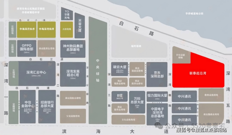 位于深超总东端,东面是华侨城蓝楹湾,南面是TCL和学校用地,西面是京东深圳总部,北面是华侨城湿地公园。