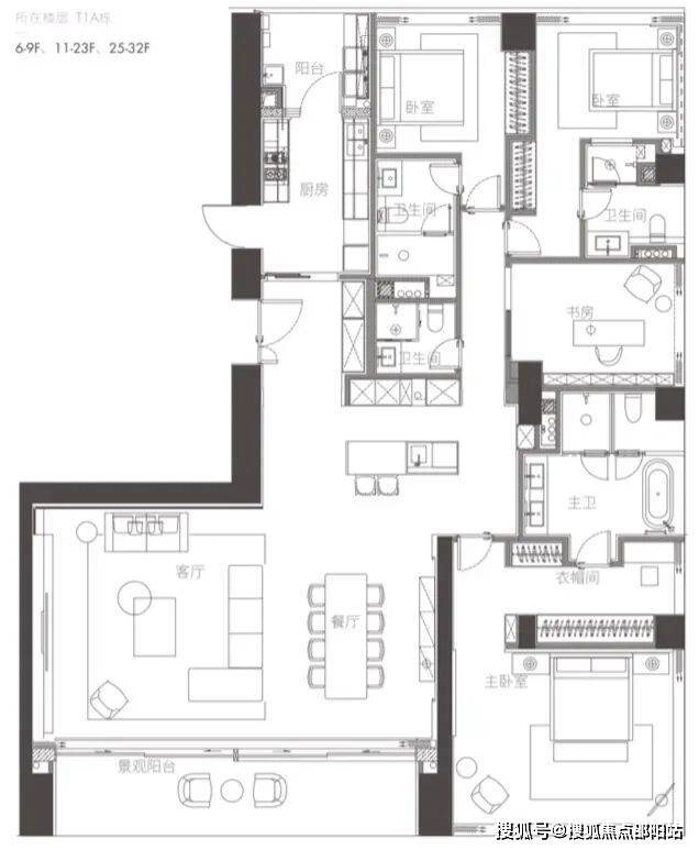 华侨城·新玺由三栋超高层建筑组成,整体开发分为两期-28。一期为2栋38层建筑,二期为1栋57层、高达约250米的超高层综合楼--12。在产品设计上,其核心亮点在于通过优化的户型和极致的用材,实现了户户观海、户户朝南的优越居住体验-。整体得房率较高,户型方正实用。各户型具体情况如下表所示:
