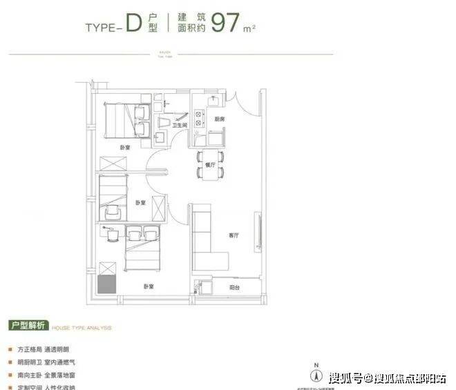 建面约97㎡的户型为三室一厅一卫的布局,次卧可灵活打造成儿童房、书房等空间,既能满足自身居住需求,也能让客人来家小住,可以照顾到生活的各方面细节。