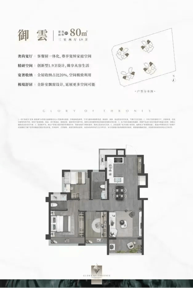 设计的是横厅南北通透格局,客餐厅开间8米,约14.7米超幕视野,超长阳台,主卧转角270°大飘窗,U型厨房,得房率:78.99%(不含赠送),阳台主朝西南或东南向。