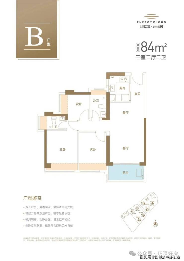 建面约84㎡硬核3房2厅2卫,餐客厅一体,更显开阔大气,动静分区,同等面积多一卫。