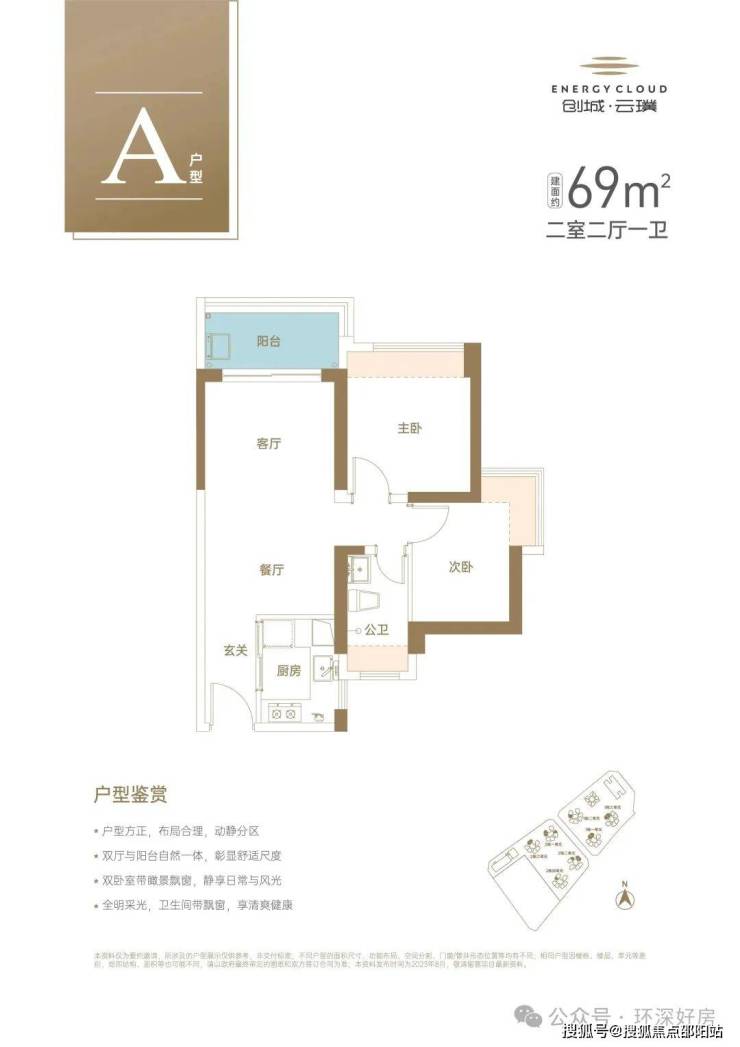 建面约69㎡舒适2房2厅1卫,全明采光,双卧室带瞰景飘窗,多维收纳空间,让收纳无忧。
