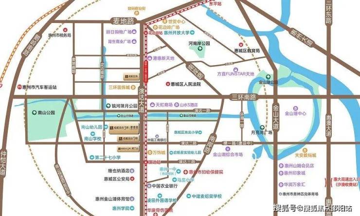 举步即达金山河绿道(全长约3.4千米)、南山公园(总体规划面积达41万m)及市政公园(规划中),畅享城市鲜氧森活,;近享金山湖体育馆、金山湖跳水馆、惠州奥林匹克体育馆三大运动场地让生活更美好;更有惠州市第一妇幼保健院、华康骨伤医院两大优质医疗资源,让健康常在。