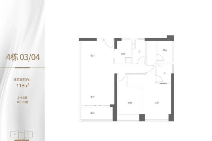 建面约118㎡3房