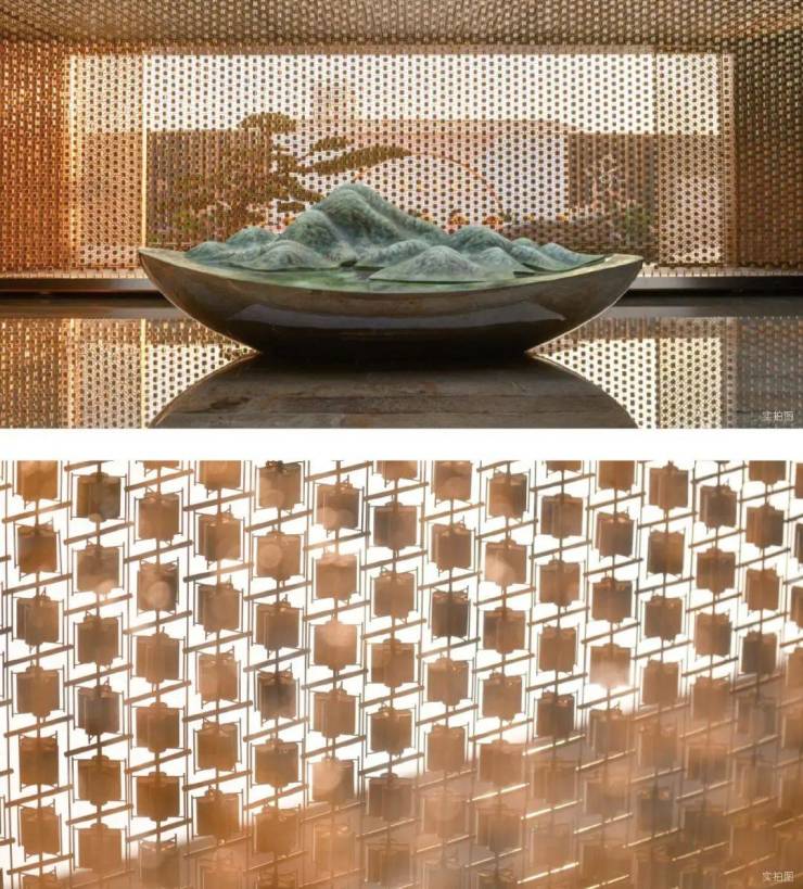 取春天清风徐来、水波不兴的意象,以“广绣隐现、幕墙灵动”为设计概念,打造泗水归堂空间入口照壁屏风,彰显归家尊贵感与品质。