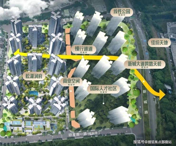 *城市慢行公共廊道——串联人才社区/佳纷天地/松湖烟雨,咫尺繁华商业。