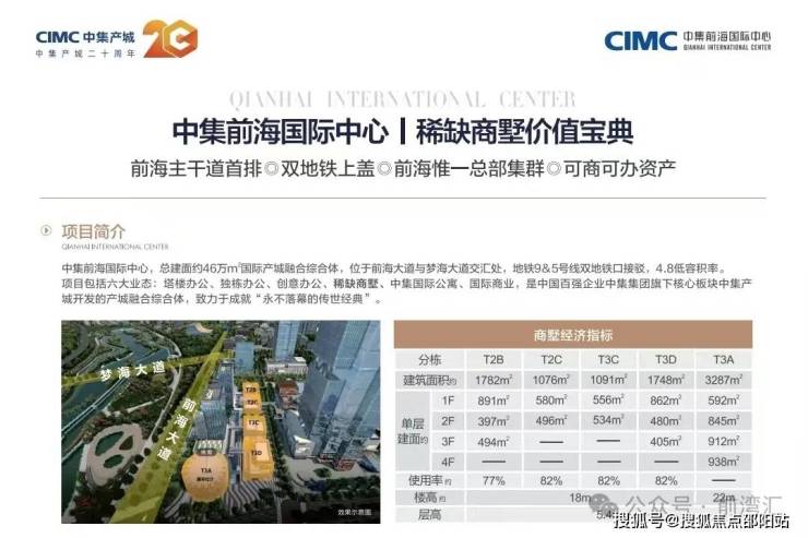中集前海国际中心,位于前海中心腹地,联袂全球杰出团队打造约46万㎡产城融合综合体,大道首排昭示,TOD双地铁口接驳,业态涵盖塔楼办公、独栋办公、稀缺商墅、创意办公、中集国际公寓、国际商业。作为前海惟一总部集群,以“5O”定义总部办公新标准。