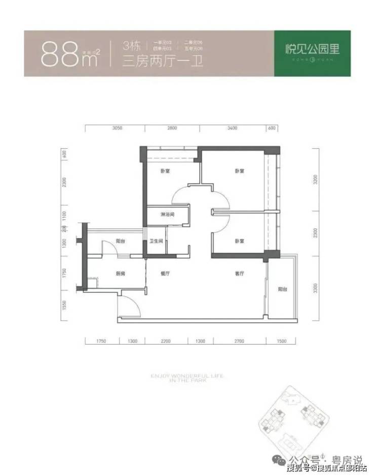 88㎡的3房2厅1卫,折后总价308-324万/套,单价3.5-3.68万/㎡。