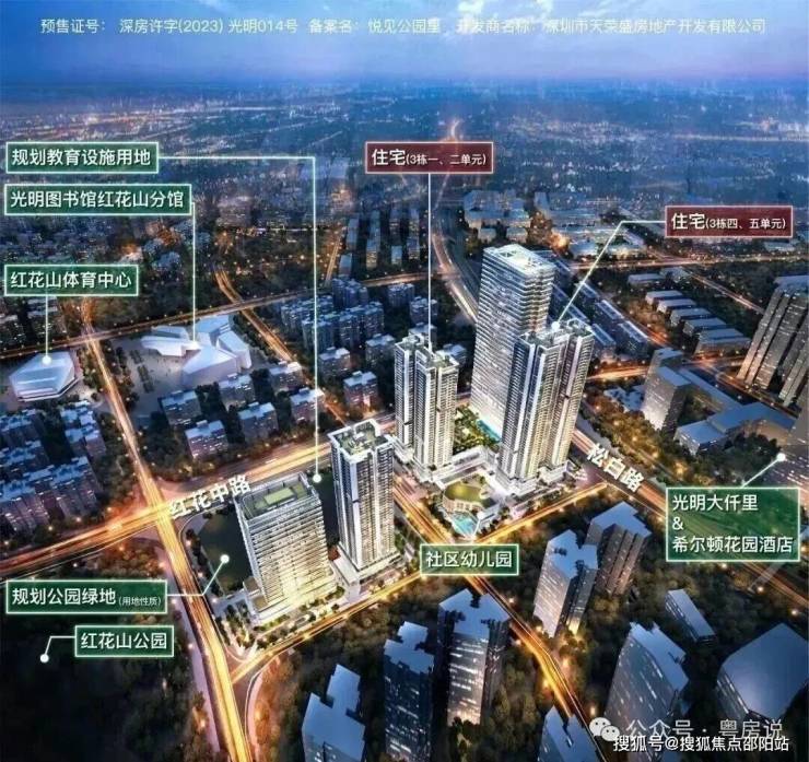 项目位于光明区公明片区,原为宏发达叁城市更新,占地约3万㎡,总建面约30万㎡,规划建设2栋高达46层的150米、2栋36层的120米的商住楼,以及一所配套小学。其中A635-0259地块,总占地面积约2.24万㎡,总建筑面积约24.94万㎡,计容建筑面积约18.23万㎡,容积率7.58,绿化率40.01%,共由2栋4个单元住宅组成,其中3栋1/2单元住宅36F,3栋4/5单元住宅46F,3栋3单元写字楼38F,4栋是1所9班制幼儿园,
