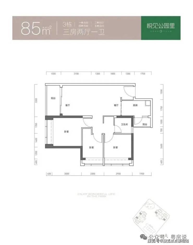 85㎡的3房2厅1卫,折后总价297-319万/套,单价3.49-3.75万/㎡。
