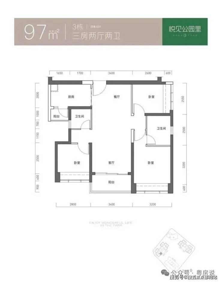 97㎡的3房2厅2卫,折后总价365-366万/套,单价3.72-3.73万/㎡。