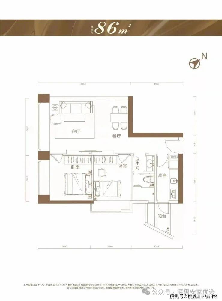 按高端住宅设计,主要户型为86㎡-125㎡2-3房户型为主,没有常规阳台、只有厨房生活阳台,还有现房在售。