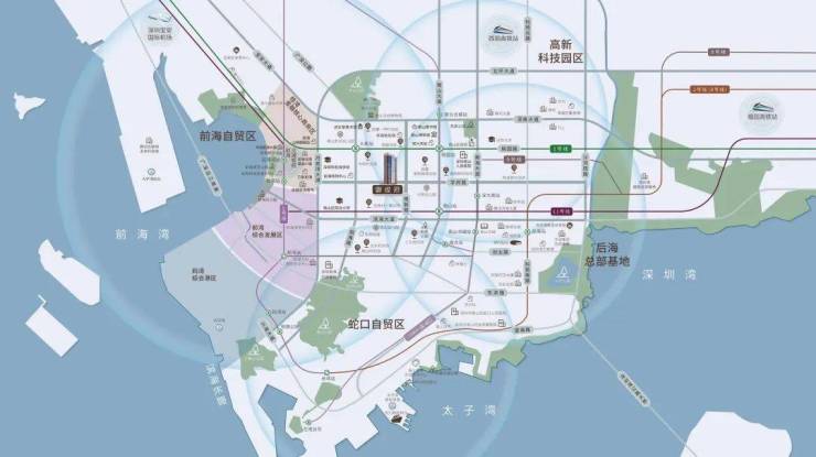 四枢纽:深圳湾口岸、邮轮母港、前海综合交通枢纽(计划2024年开通)、国际机场