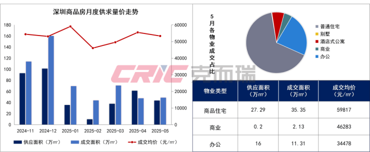 2025年5月,深圳整体市场商品房整体供应显著回落,其中仅有6个住宅项目获批预售。一手住宅成交量环比持续下跌,同比仍上涨,主力成交区域仍是龙华区。开盘方面,据统计整体市场共12个项目开盘加推入市,其中10个住宅项目。宏观政策&行业动态(2025.5)