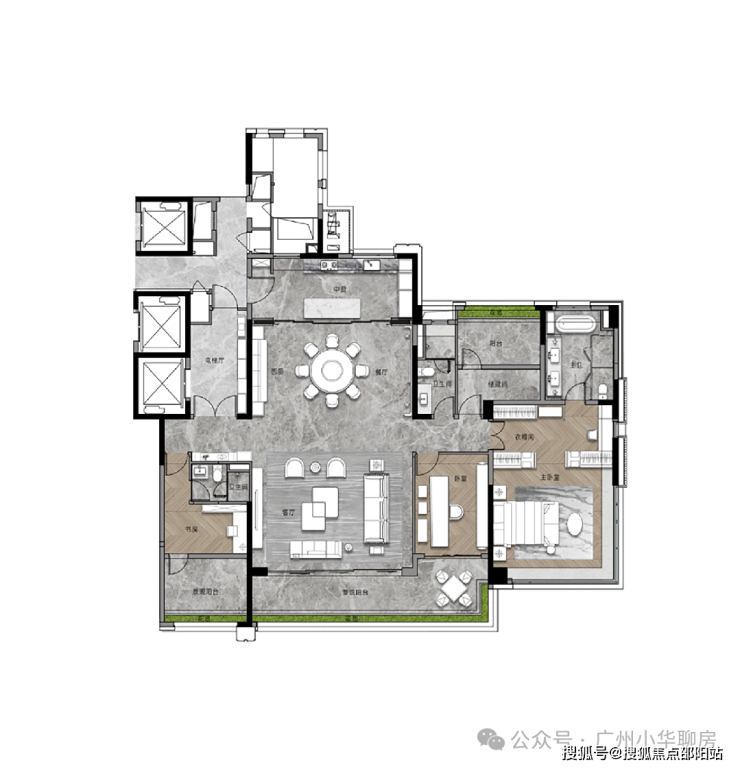 我们再来看看此次加推的268平的大面积户型,作为项目的旗舰,暗藏着哪些巧妙的设计?
