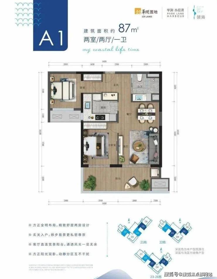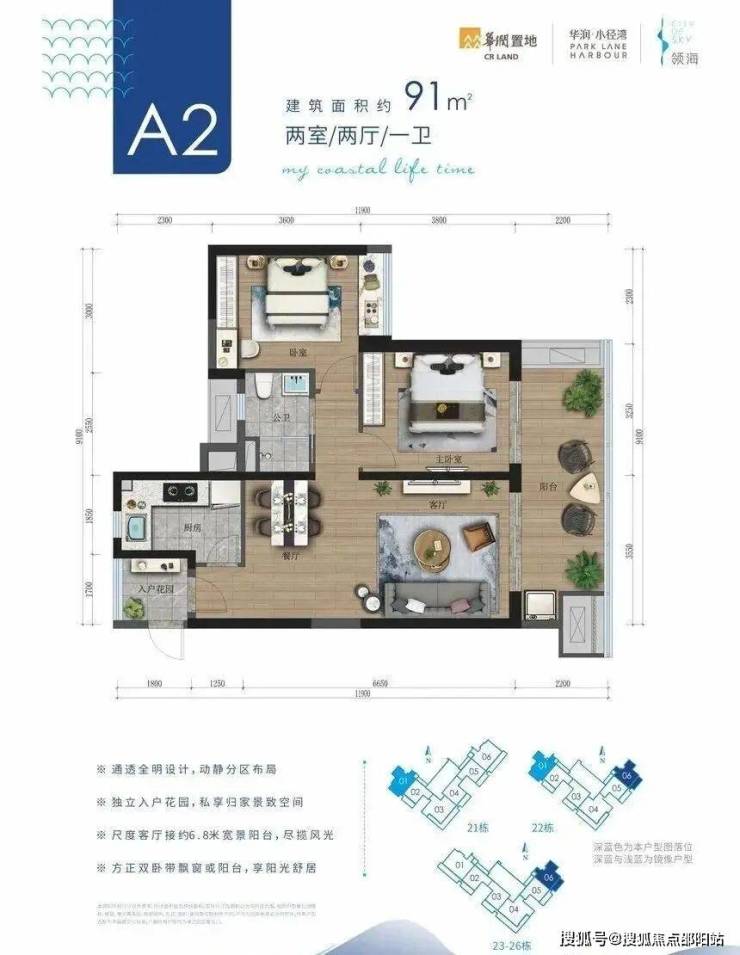 约87-91㎡实用两房,独立入户花园,推窗观海