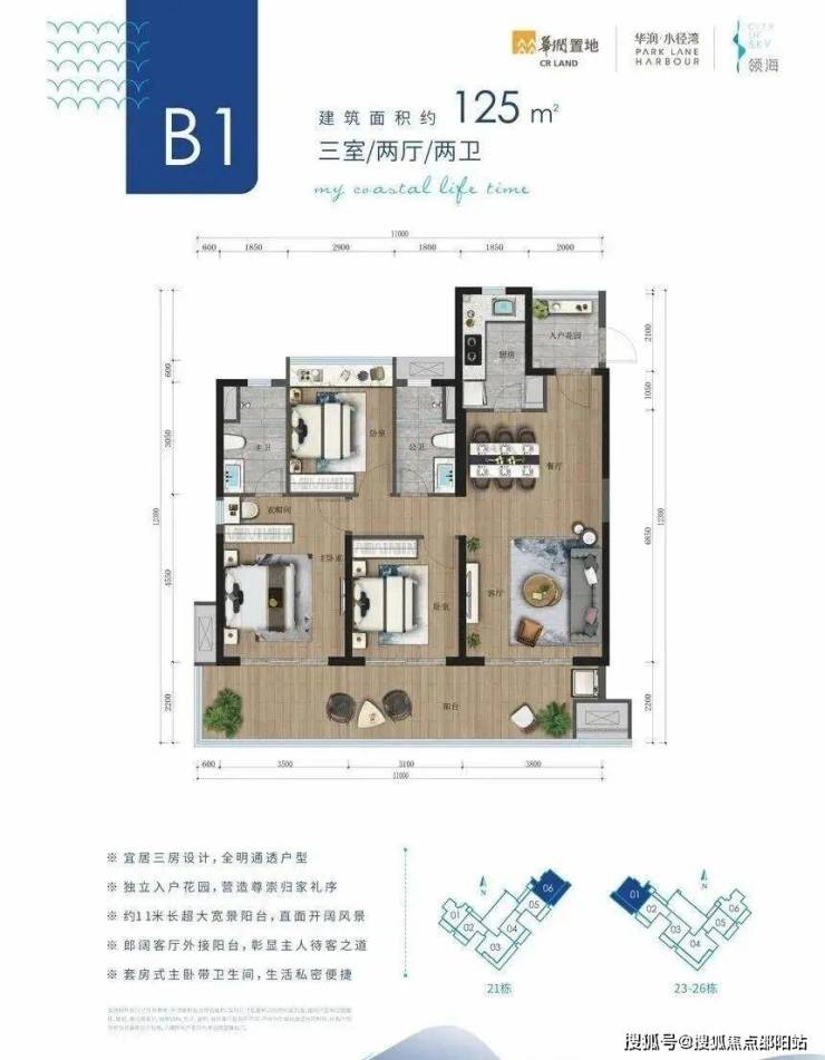 2、约11米超长观海阳台,享受视觉盛宴;