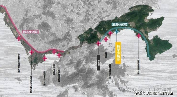 进一步提升为“梅沙黄金海岸旅游区”。盐田结合"七分山、三分城、一面海”地理特征,规划“三带、三心、三组团”,定位为深港国际消费合作区、世界级滨海旅游目的地、国际航运枢纽和离岸贸易中心、现代海洋城市示范区、东部滨海区域的综合性服务中心。